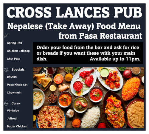 A delicious Nepalese food menu (available as a take away from the manager’s next door Pasa